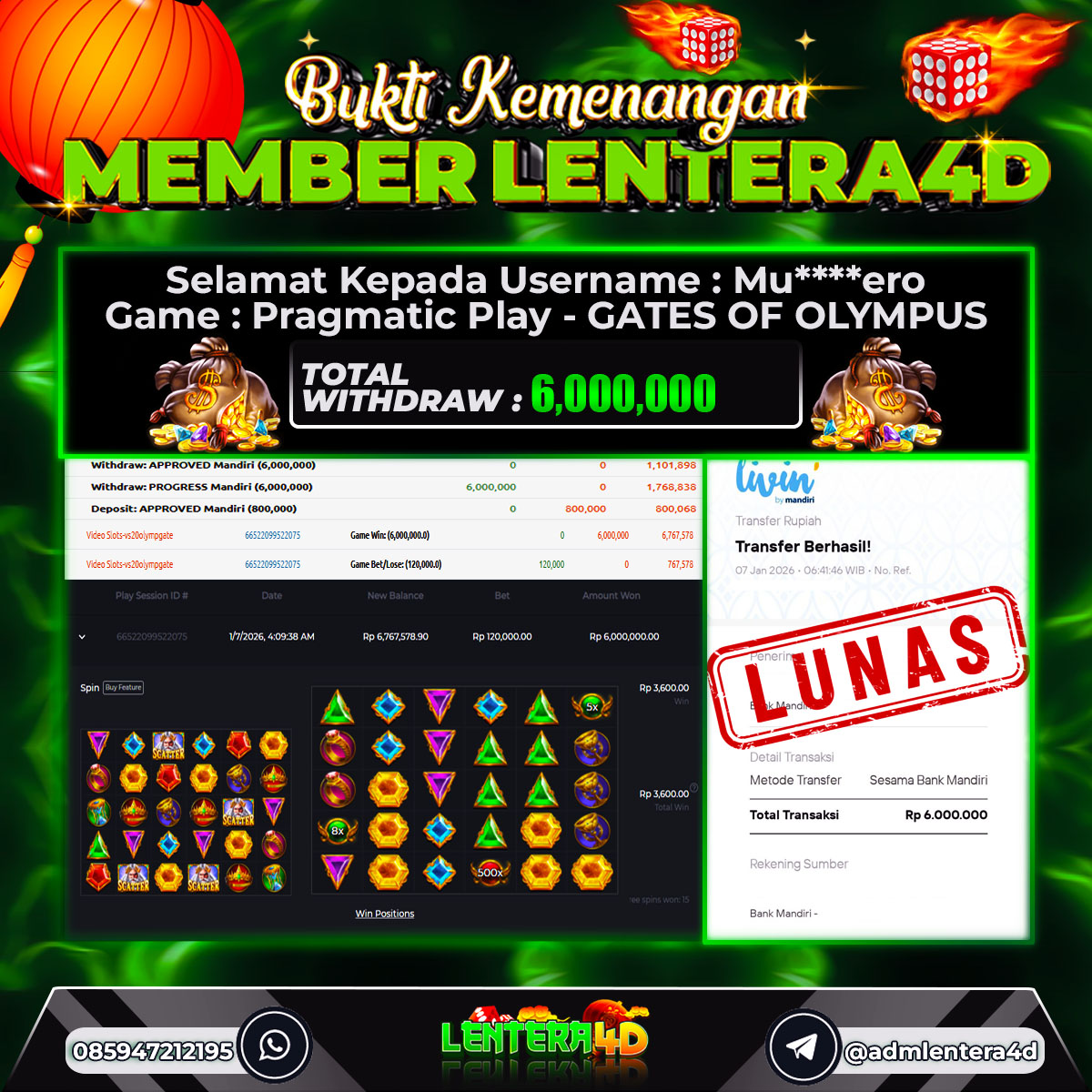 JACKPOT MAIN GATES OF OLYMPUS 07 JANUARI 2026, Jackpot Slot Gacor, Kemenangan Slot, Bukti Kemenangan Slot, Kemenangan Slot Pragmatic Play, Menang Slot online, Slot Gacor, Situs Aman Terpercaya, WD Berapapun Pasti DI Bayar Tuntas, Maxwin Slot Online.