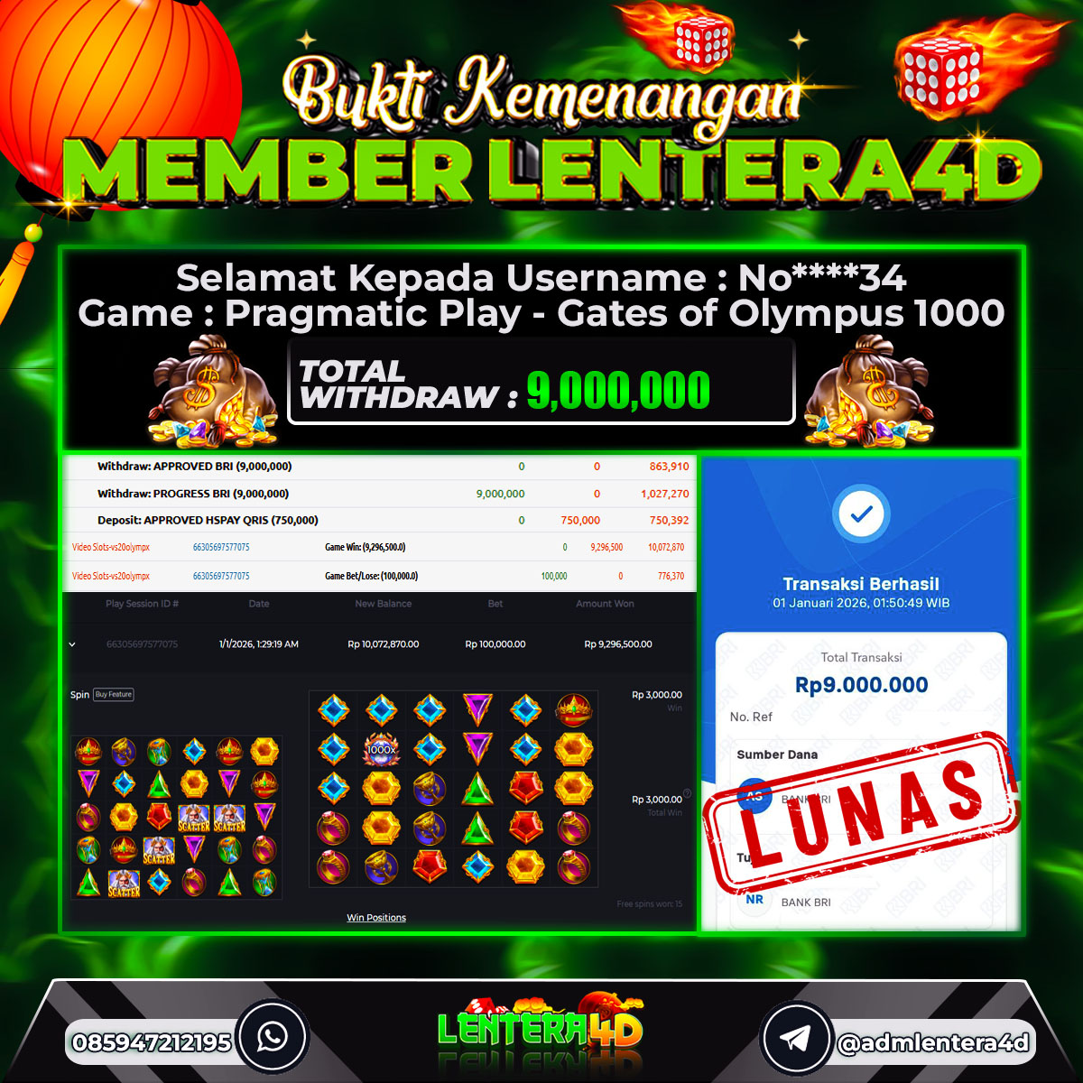 JACKPOT GATES OF OLYMPUS 1000 01 JANUARI 2026, Jackpot Slot Gacor, Kemenangan Slot, Bukti Kemenangan Slot, Kemenangan Slot Pragmatic Play, Menang Slot online, Slot Gacor, Situs Aman Terpercaya, WD Berapapun Pasti DI Bayar Tuntas, Maxwin Slot Online.
