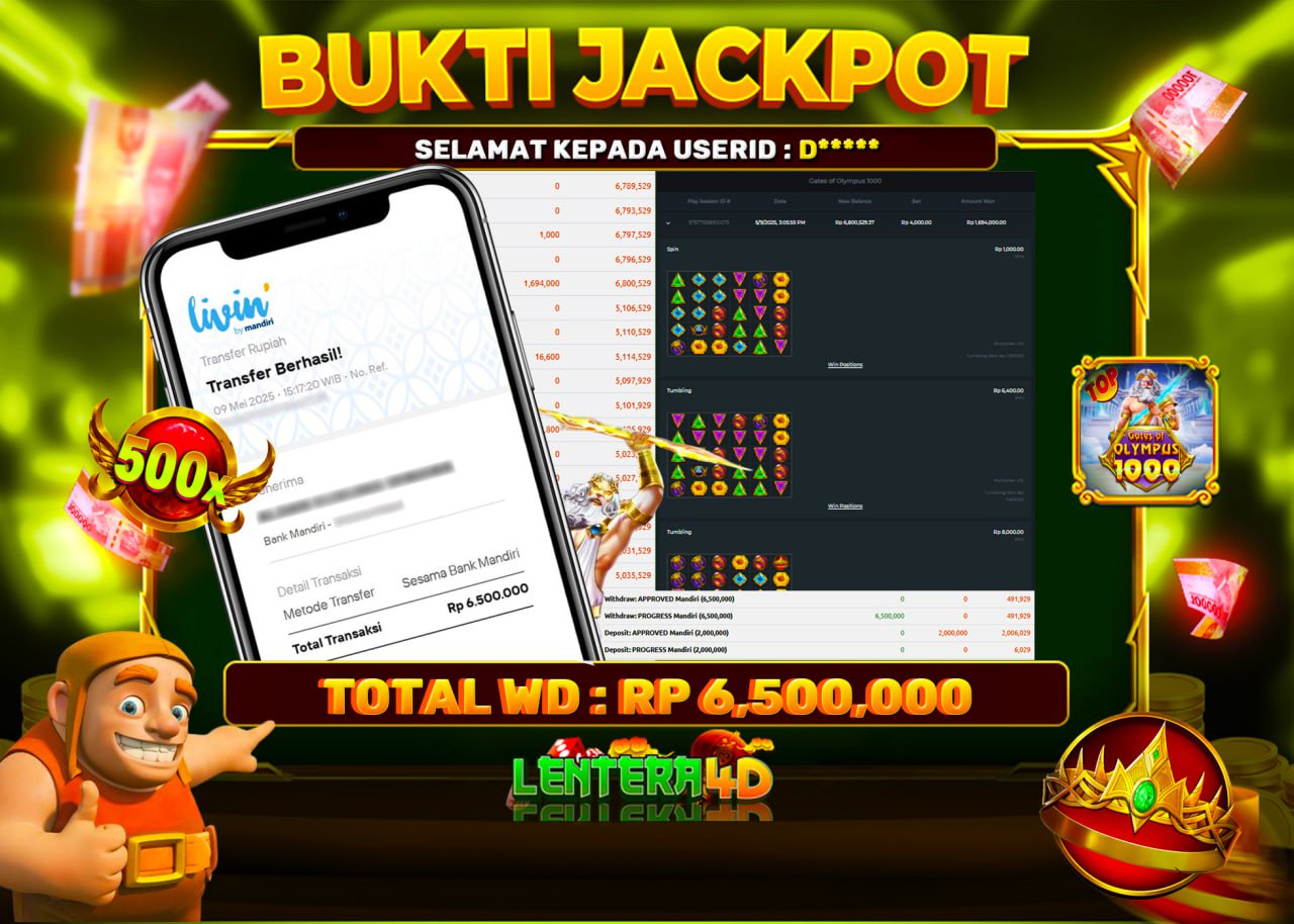 Satu lagi Bukti JP dan Pembarayan Sah Dan Dapat Dipertanggung Jawabkan, WD Berapapun Pasti Dibayar Lunas Hanya di Situs LENTERA 4D. Hati Hati Kepada Pihak Pihak Yang Mengatas namakan Pihak LENTERA4D Untuk Melakukan Penipuan.