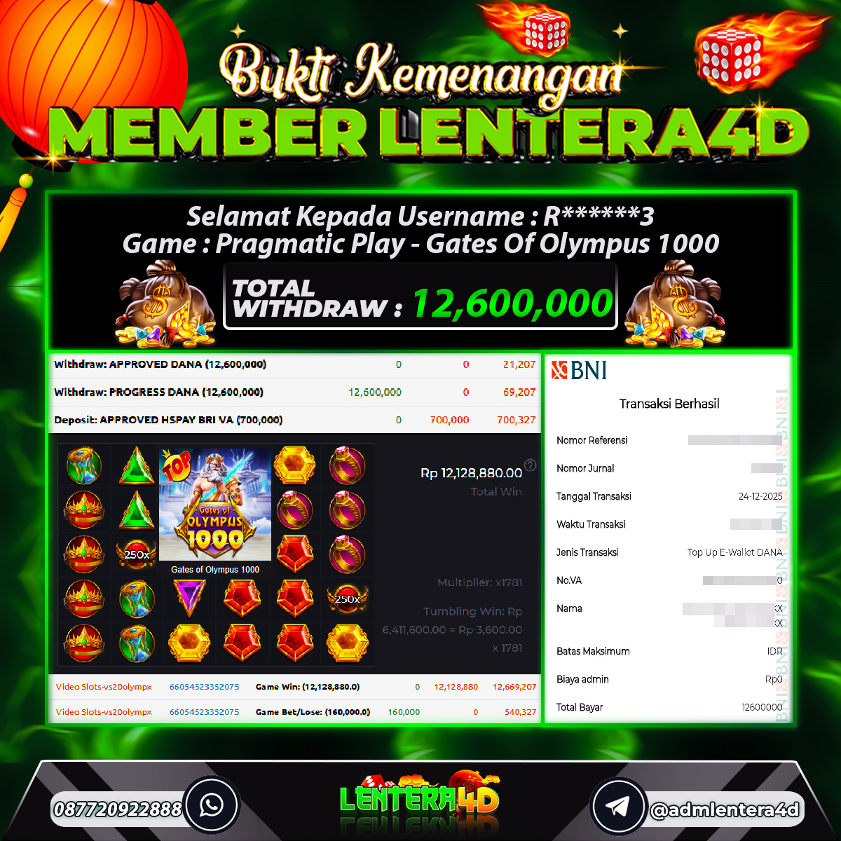 TOTAL KEMENANGAN : Rp 12.600.000,-