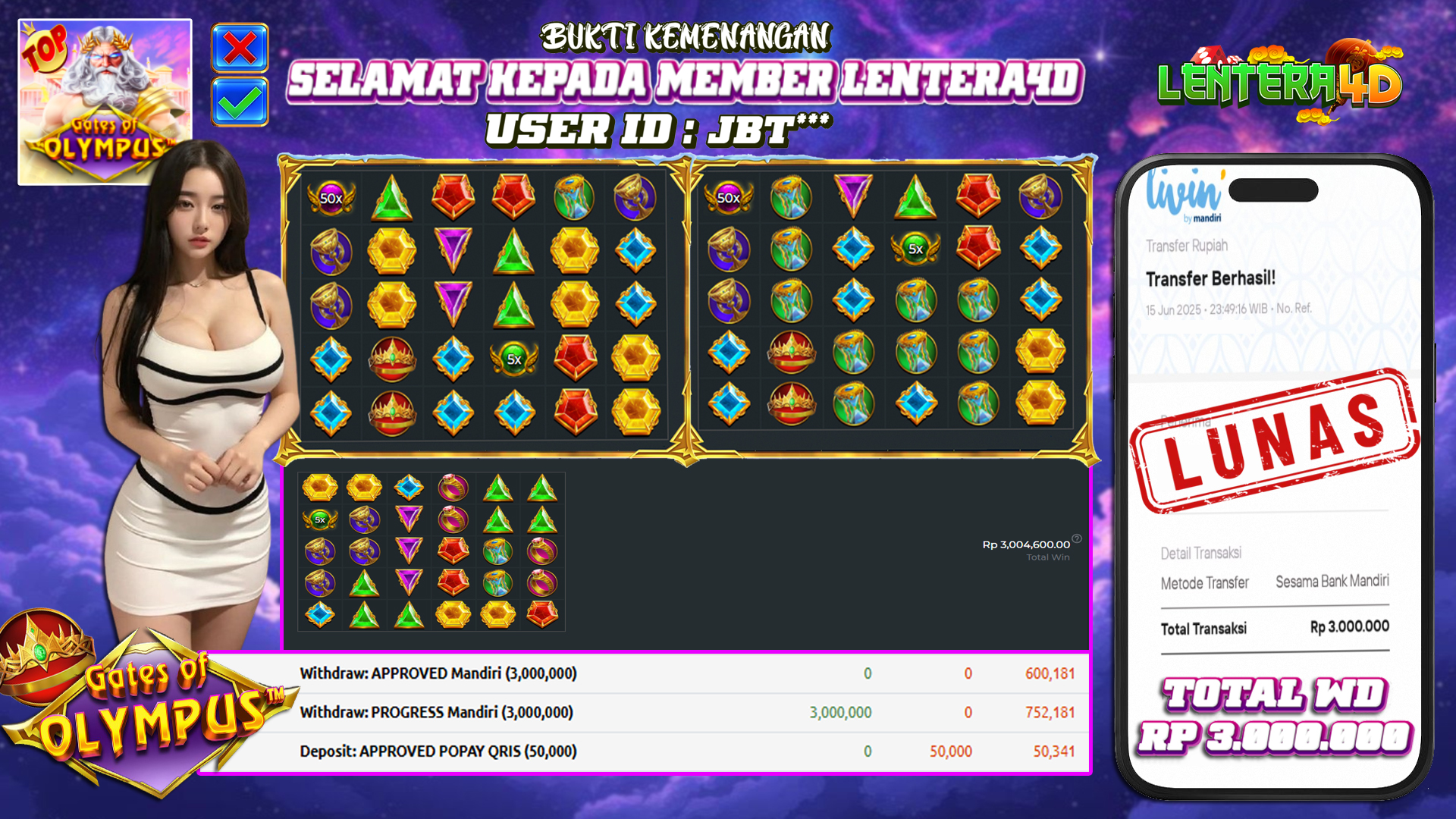 JACKPOT MAIN GATES OF OLYMPUS 15 JUNE 2025, Jackpot Slot Gacor, Kemenangan Slot, Bukti Kemenangan Slot, Kemenangan Slot Pragmatic Play, Menang Slot online, Slot Gacor, Situs Aman Terpercaya, WD Berapapun Pasti DI Bayar Tuntas, Maxwin Slot Online.