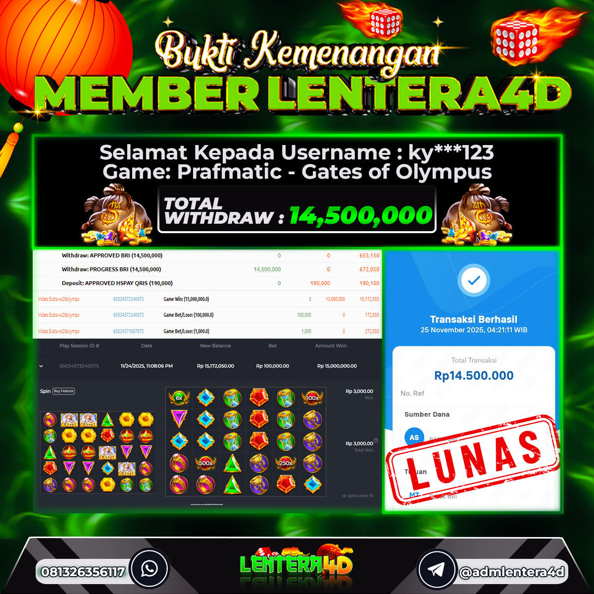 TOTAL KEMENANGAN : Rp. 14.500.000,-