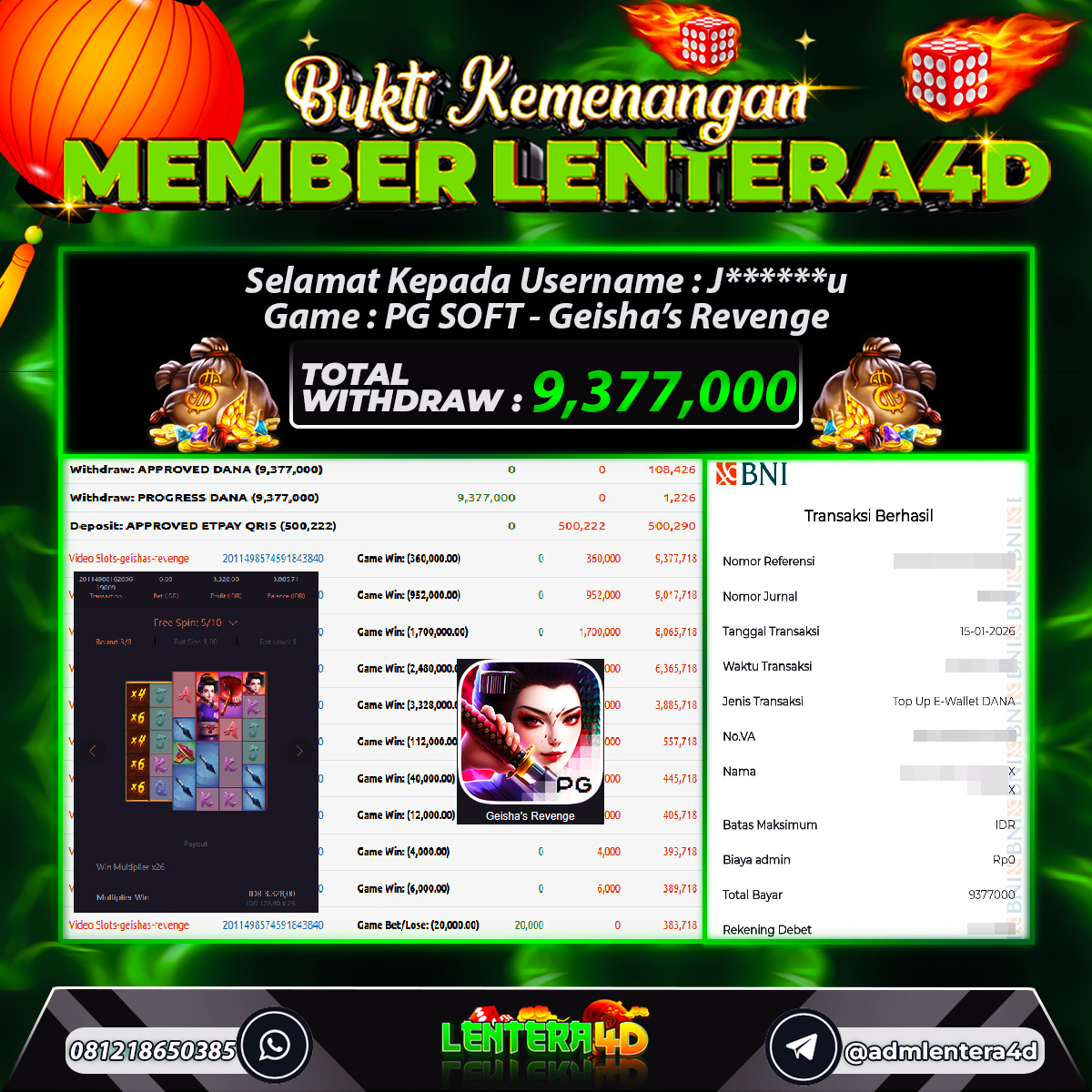 JACKPOT MAIN GEISHA’S REVENGE 15 JANUARI 2026