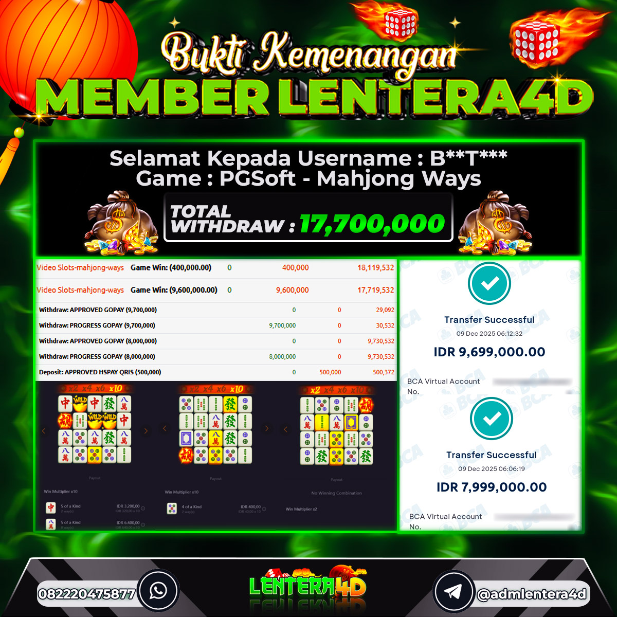 JACKPOT MAIN MAHJONG WAYS 09 DESEMBER 2025, Jackpot Slot Gacor, Kemenangan Slot, Bukti Kemenangan Slot, Kemenangan Slot PG SOFT, Menang Slot online, Slot Gacor, Situs Aman Terpercaya, WD Berapapun Pasti DI Bayar Tuntas, Maxwin Slot Online.