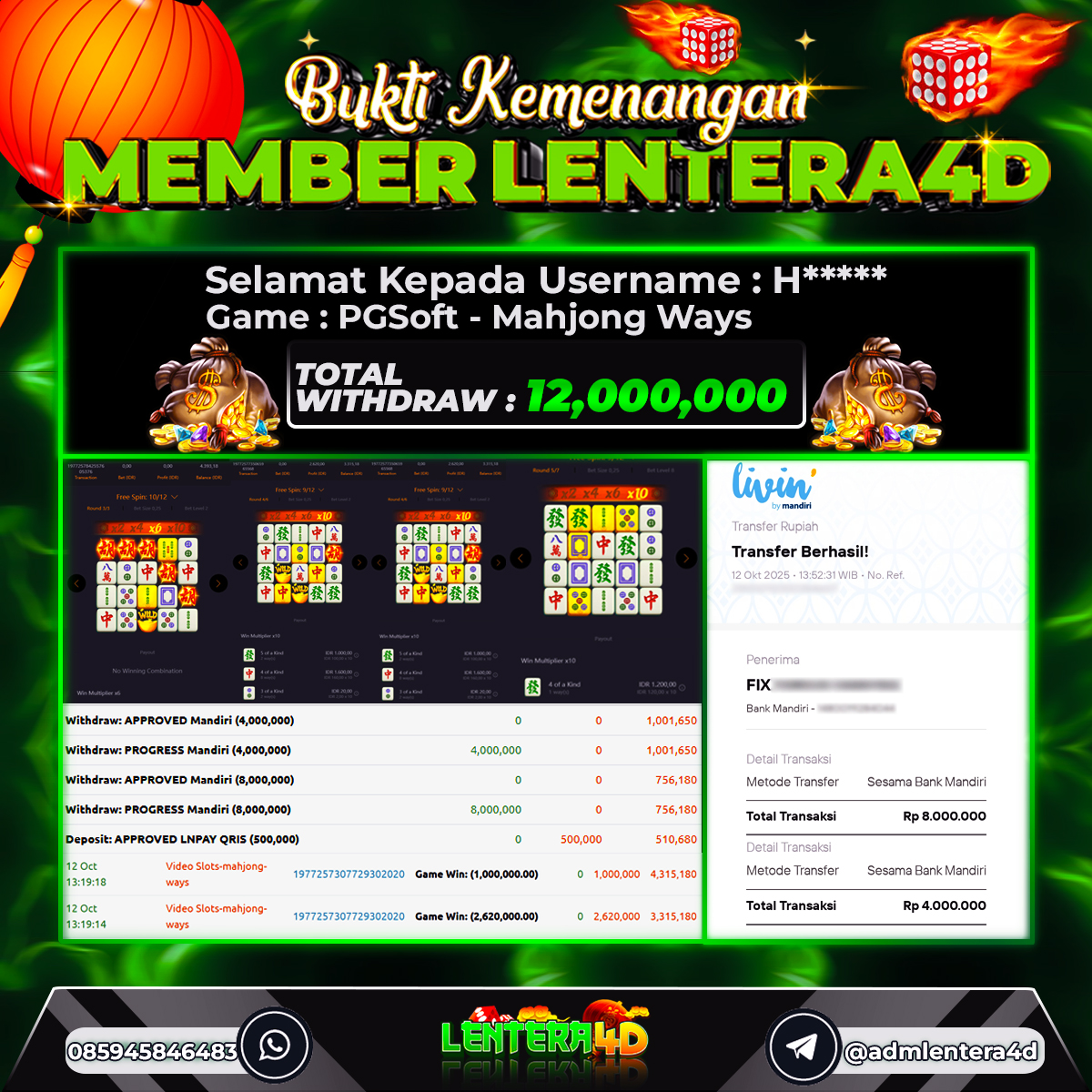 TOTAL KEMENANGAN : Rp 12.000.000,-