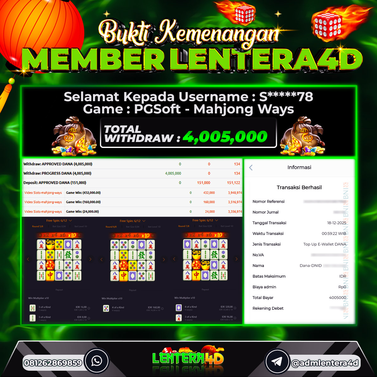 TOTAL KEMENANGAN : Rp. 4,005,000,-