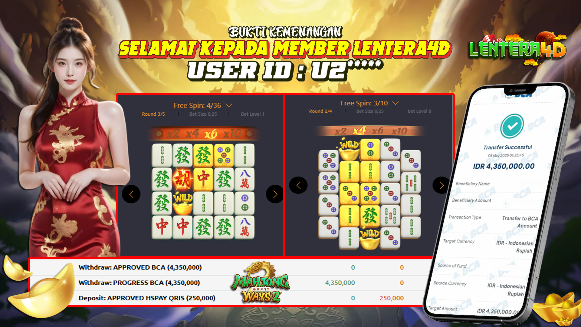 Selamat Kepada Member Yang Berhasil Mendapatkan Jackpot Dipermainan Slot PG SOFT Hari Ini, Berikut Bukti SS Jackpot Member Di Situs LENTERA4D
