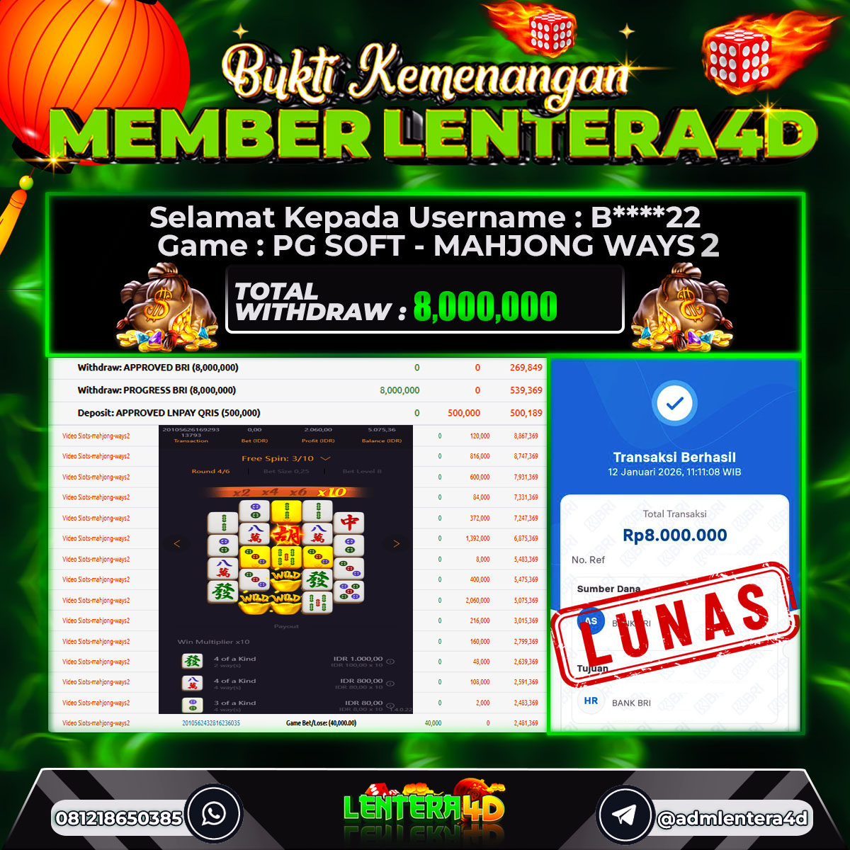 JACKPOT MAIN MAHJONG WAYS 2 12 JANUARI 2025, Jackpot Slot Gacor, Kemenangan Slot, Bukti Kemenangan Slot, Kemenangan Slot PG SOFT, Menang Slot online, Slot Gacor, Situs Aman Terpercaya, WD Berapapun Pasti DI Bayar Tuntas, Maxwin Slot Online.