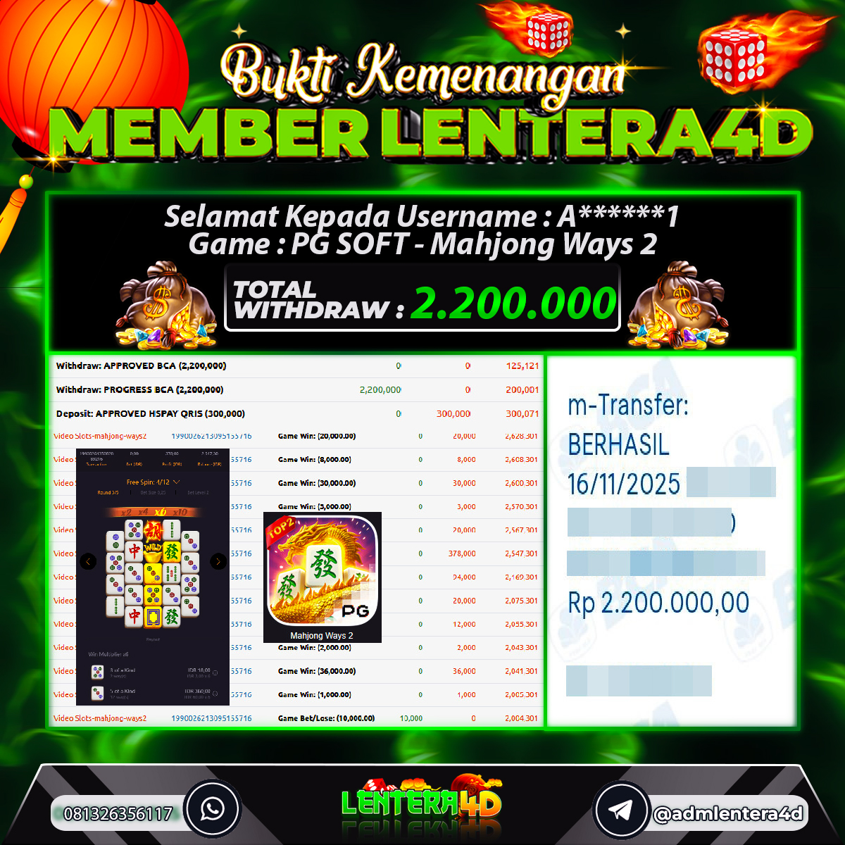 JACKPOT MAIN MAHJONG WAYS 2 16 NOVEMBER 2025, Jackpot Slot Gacor, Kemenangan Slot, Bukti Kemenangan Slot, Kemenangan Slot PG SOFT, Menang Slot online, Slot Gacor, Situs Aman Terpercaya, WD Berapapun Pasti DI Bayar Tuntas, Maxwin Slot Online.