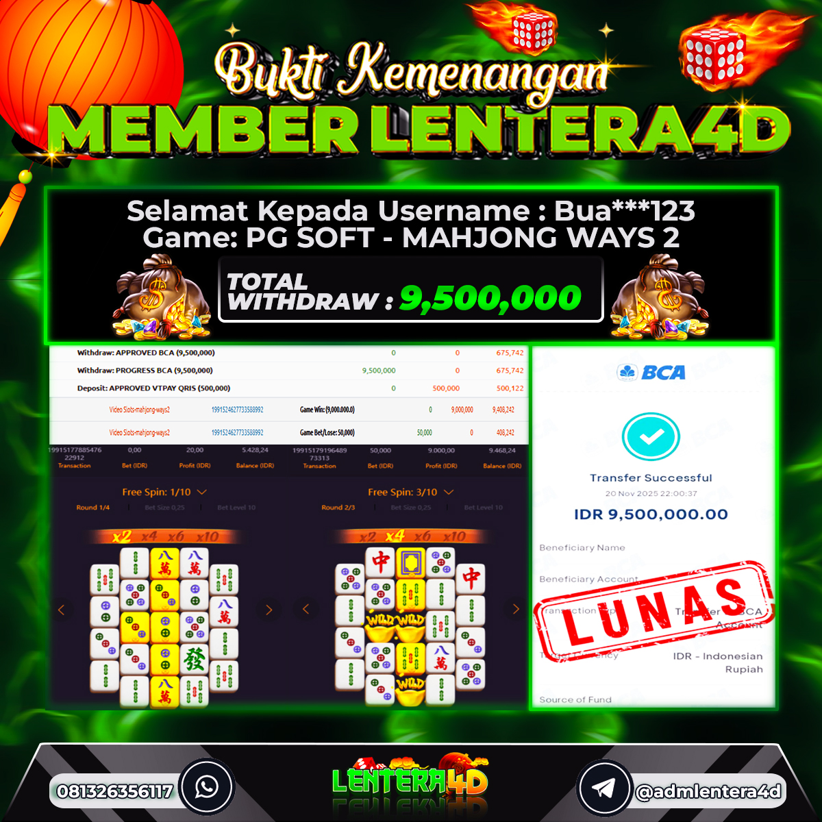 TOTAL KEMENANGAN : Rp. 9.500.000,-