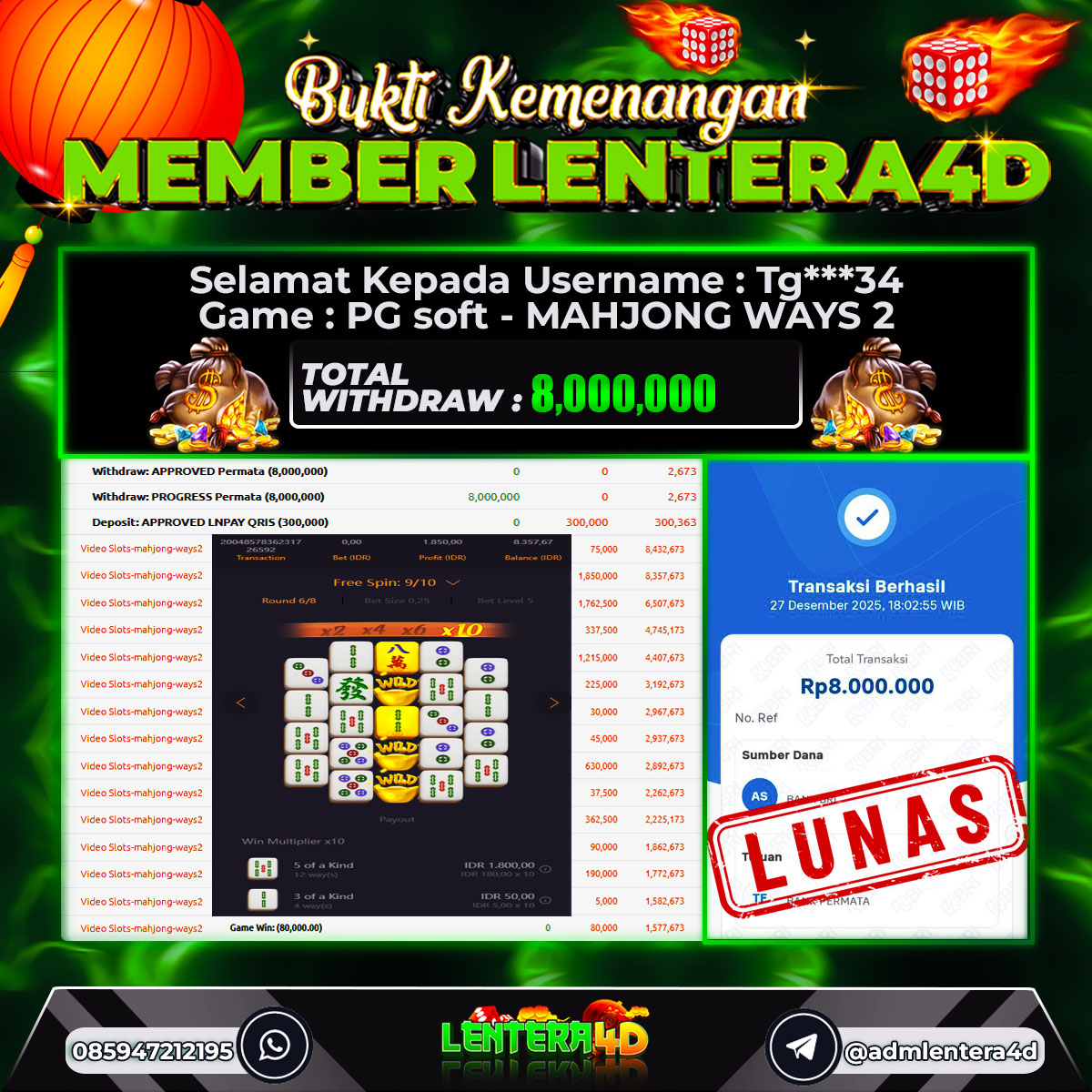 JACKPOT MAHJONG WAYS 2 27 DESEMBER 2025