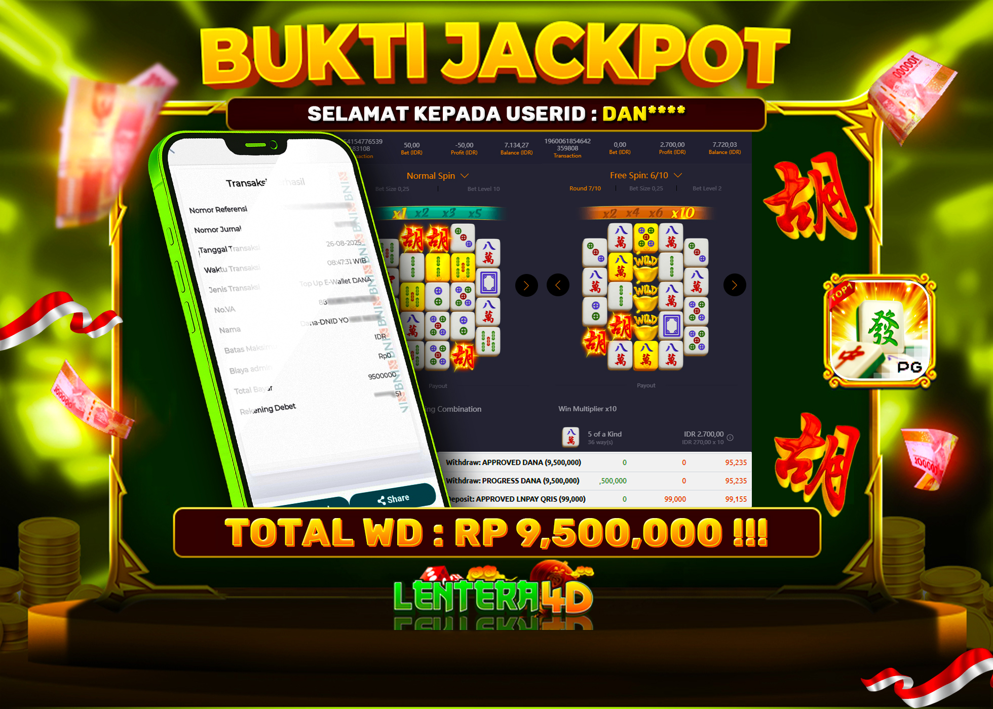 Setiap hari, member Lentera4D berhasil meraih jackpot besar dari berbagai provider slot ternama yang kami sediakan, seperti Pragmatic Play, Habanero, PG Soft, dan masih banyak lagi. Kami secara rutin menampilkan bukti screenshot atau rekapan kemenangan yang berhasil diraih, mulai dari kemenangan ratusan ribu hingga puluhan juta rupiah. Semua slip kemenangan ini kami hadirkan untuk membuktikan bahwa di Lentera4D, peluang menang itu nyata.