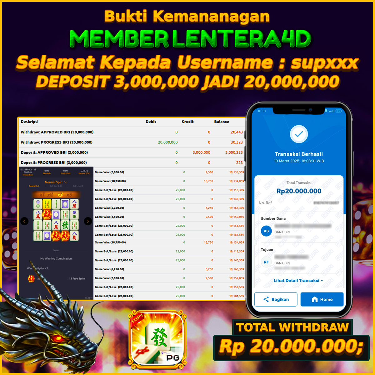 TOTAL KEMENANGAN : Rp. 20.000.000,-