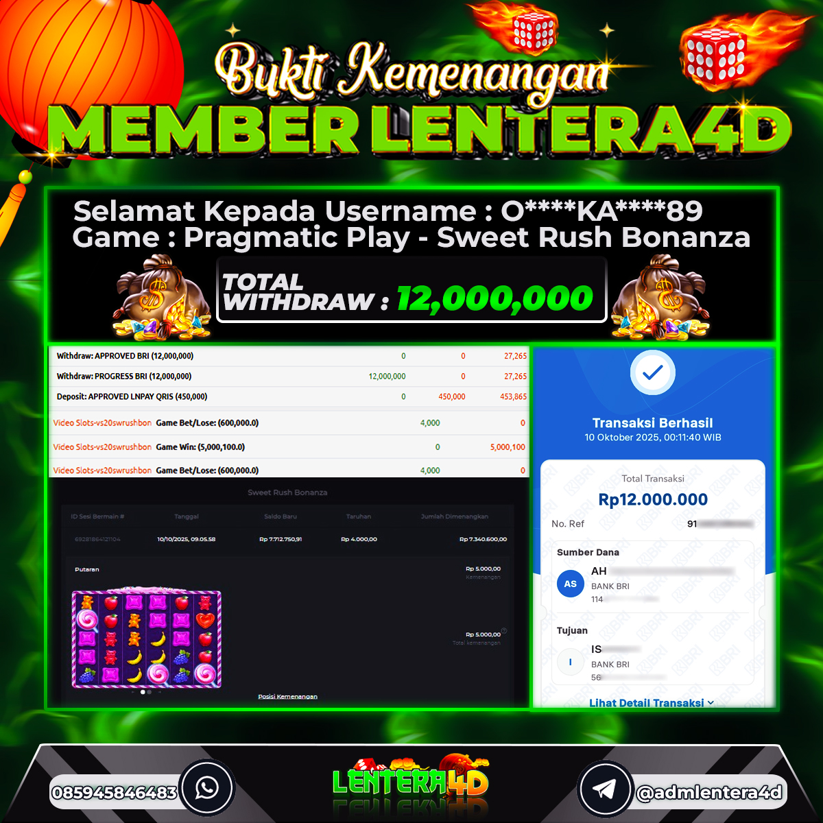JACKPOT MAIN SWEET RUSH BONANZA 10 OKTOBER 2025, Jackpot Slot Gacor, Kemenangan Slot, Bukti Kemenangan Slot, Kemenangan Slot PRAGMATIC PLAY, Menang Slot online, Slot Gacor, Situs Aman Terpercaya, WD Berapapun Pasti DI Bayar Tuntas, Maxwin Slot Online.