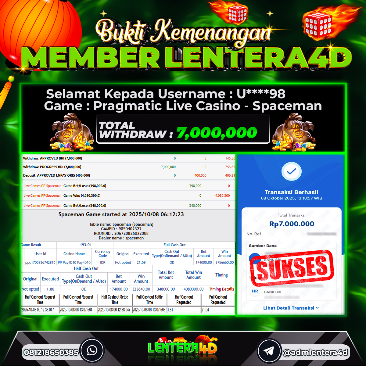JACKPOT MAIN SPACEMAN 08 OKTOBER 2025, Jackpot Live Casino Gacor, Kemenangan Live Casino, Bukti Kemenangan Live Casino, Kemenangan Pragmatic Live Casino , Menang Live Casino online, Live Casino Gacor, Situs Aman Terpercaya, WD Berapapun Pasti DI Bayar Tuntas, Maxwin Live Casino Online.