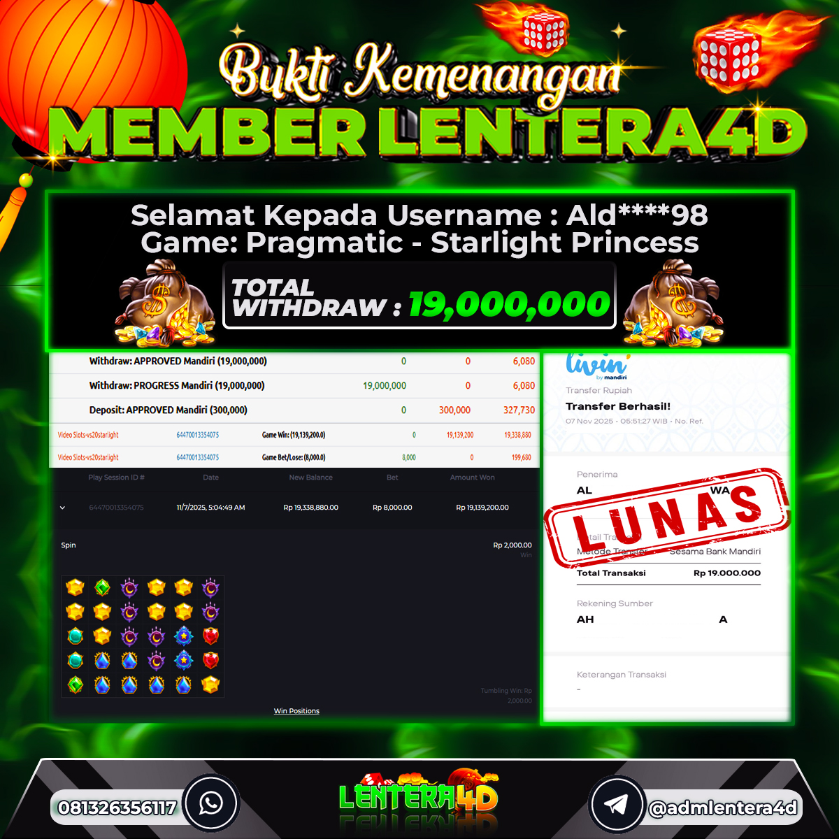TOTAL KEMENANGAN : Rp19.000.000,-