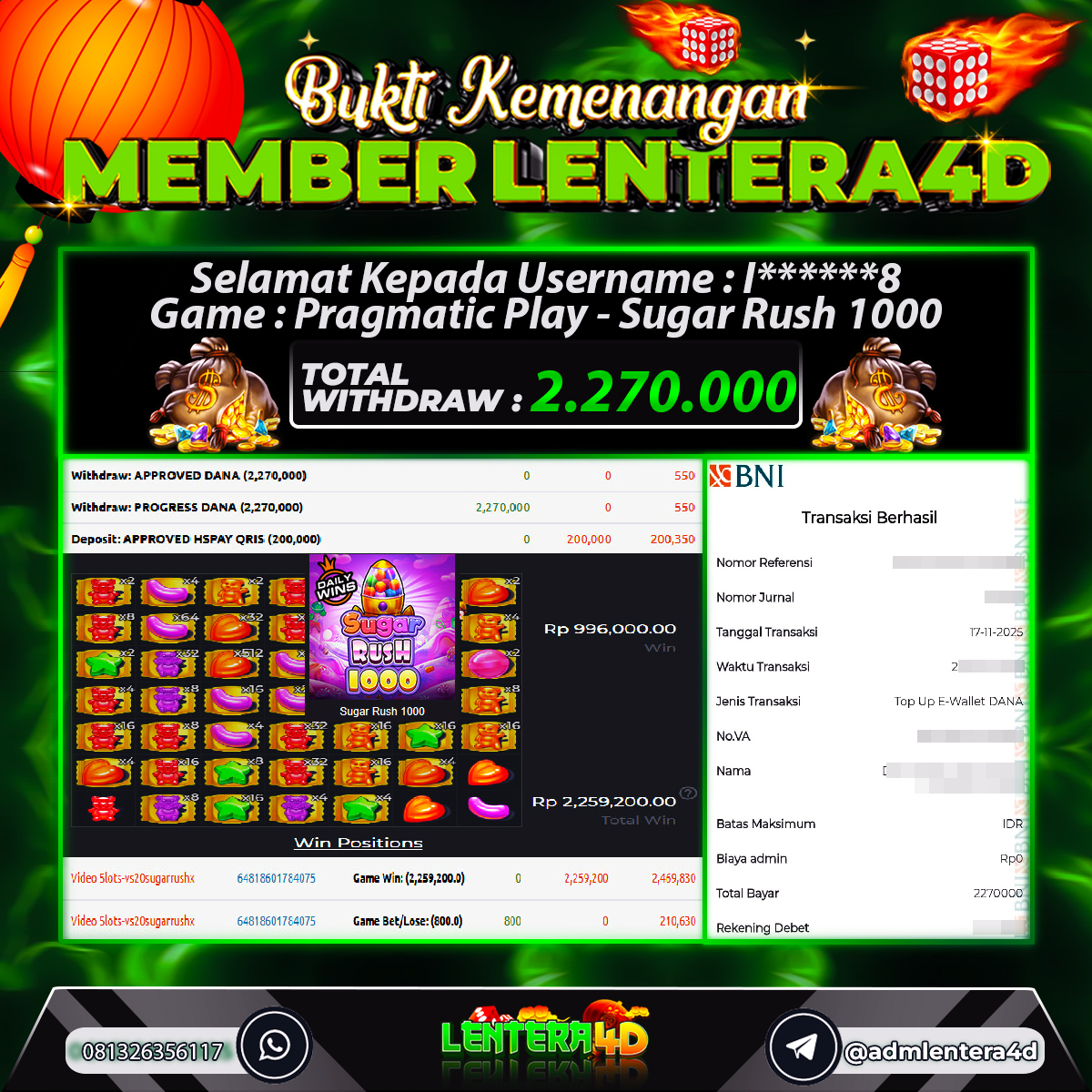 Satu lagi Bukti JP dan Pembarayan Sah Dan Dapat Dipertanggung Jawabkan, WD Berapapun Pasti Dibayar Lunas Hanya di Situs LENTERA4D. Hati Hati Kepada Pihak Pihak Yang Mengatas namakan Pihak LENTERA4D Untuk Melakukan Penipuan.