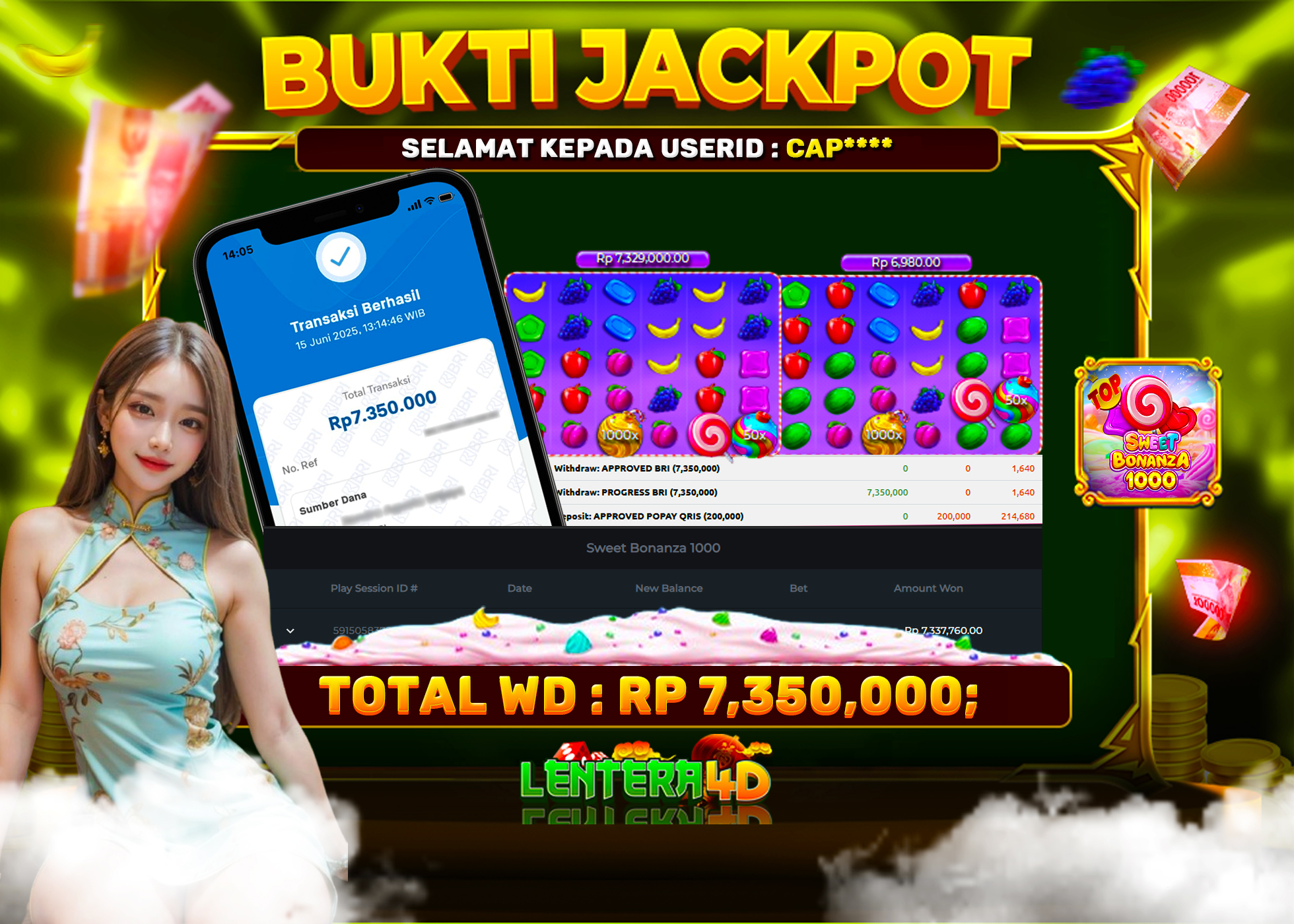 JACKPOT SWEET BONANZA 1000 15 JUNE 2025, Jackpot Slot Gacor, Kemenangan Slot, Bukti Kemenangan Slot, Kemenangan Slot PRAGMATIC PLAY, Menang Slot online, Slot Gacor, Situs Aman Terpercaya, WD Berapapun Pasti DI Bayar Tuntas, Maxwin Slot Online.