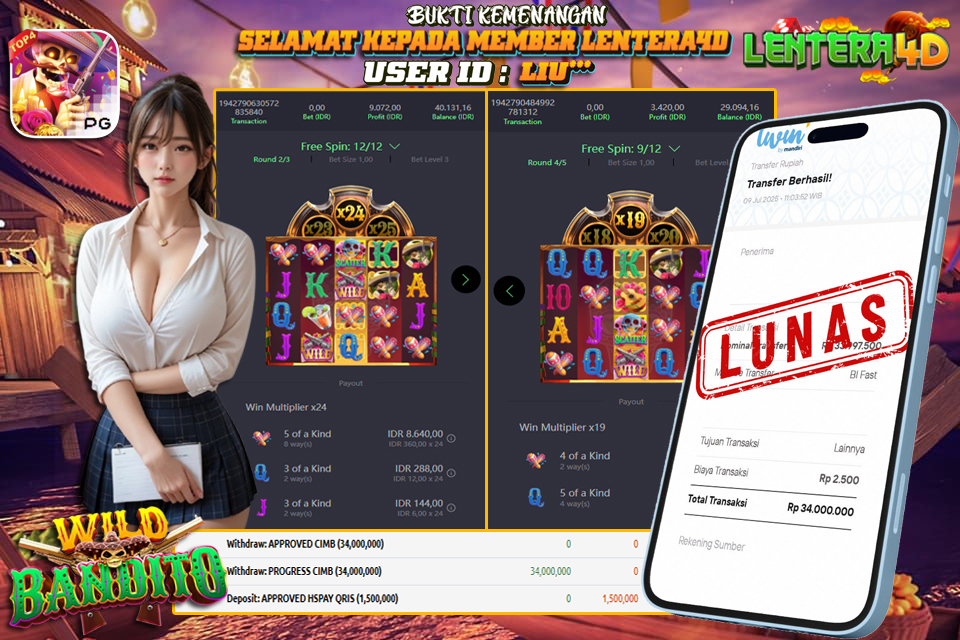 JACKPOT MAIN WILD BANDITO 09 JULI 2025, Jackpot Slot Gacor, Kemenangan Slot, Bukti Kemenangan Slot, Kemenangan Slot PG SOFT, Menang Slot online, Slot Gacor, Situs Aman Terpercaya, WD Berapapun Pasti DI Bayar Tuntas, Maxwin Slot Online.