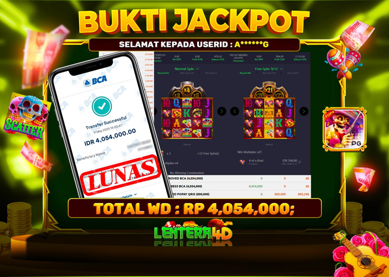 Lentera4D dikenal sebagai situs terpercaya yang selalu menghadirkan pengalaman bermain slot online yang aman, fair, dan berlisensi resmi. Di sini, kami tidak hanya sekadar memberikan janji, tapi bukti nyata berupa slip kemenangan yang dapat Anda lihat secara langsung.