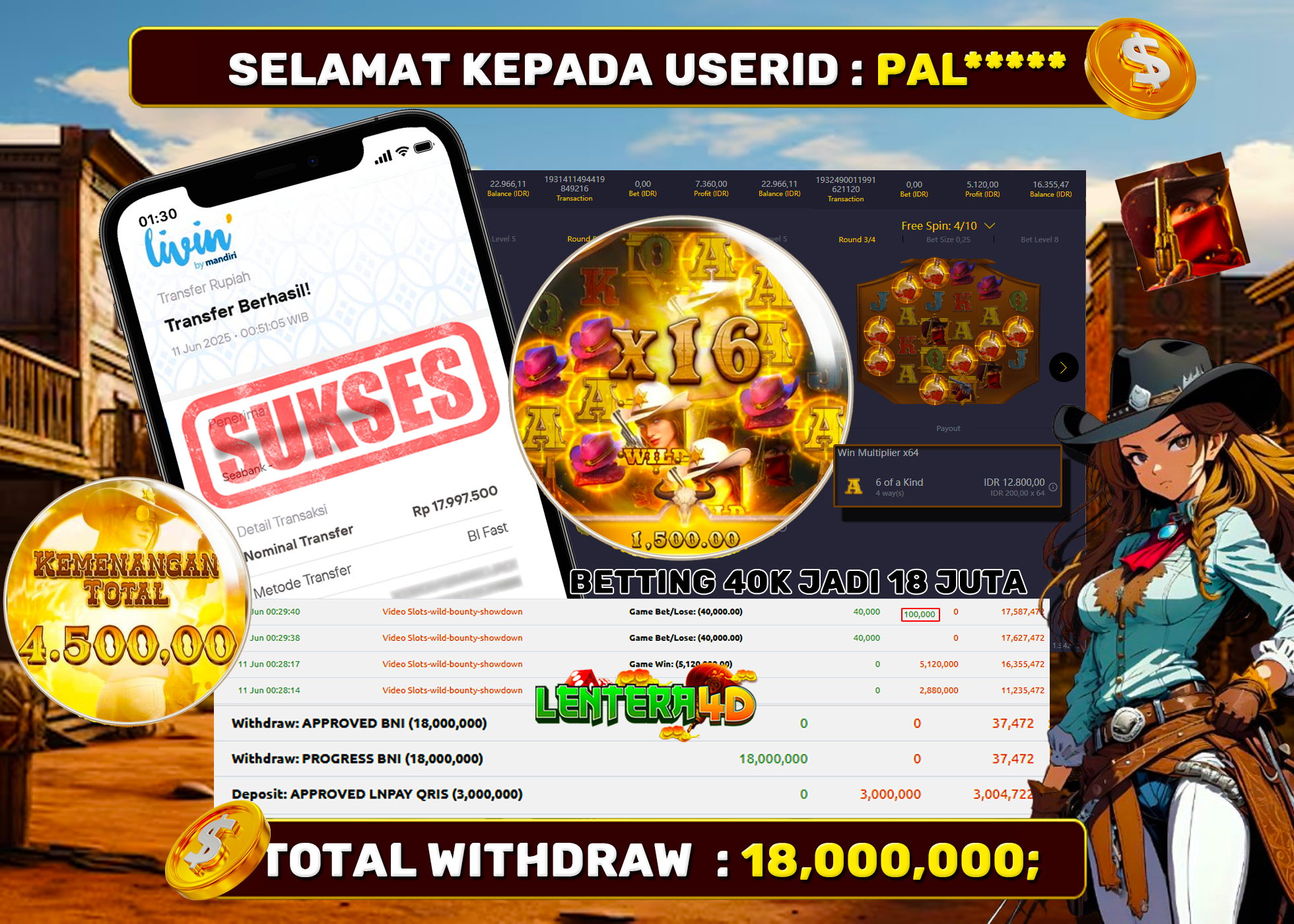 TOTAL KEMENANGAN : Rp. 18.000.000,-