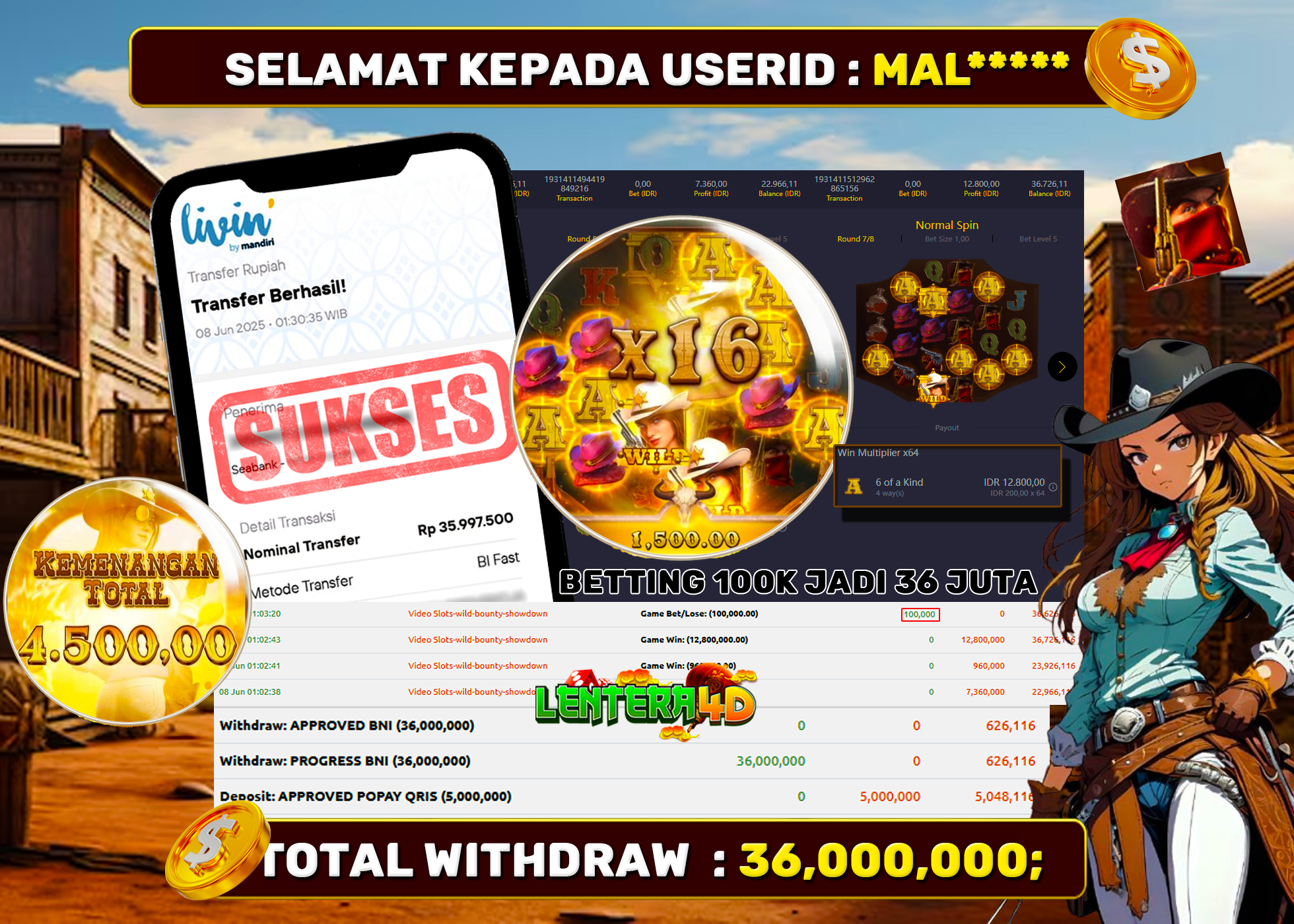 TOTAL KEMENANGAN : Rp. 36.000.000,-